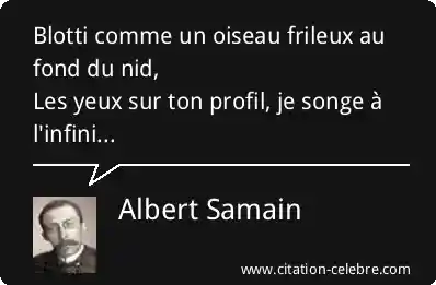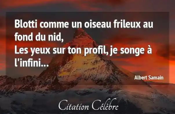 Blotti comme un oiseau frileux au fond du nid,Les yeux sur ton profil, je songe à l'infini...