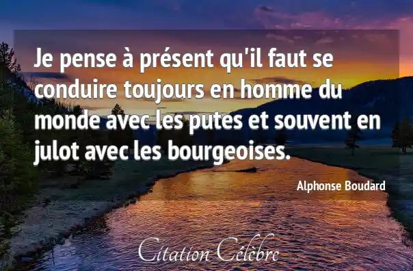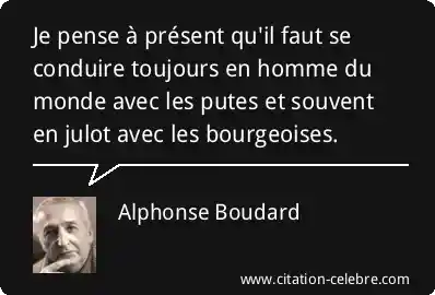 Je pense à présent qu'il faut se conduire toujours en homme du monde avec les putes et souvent en julot avec les bourgeoises.