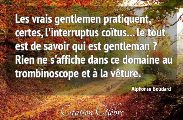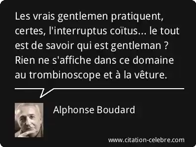 Les vrais gentlemen pratiquent, certes, l'interruptus coïtus... le tout est de savoir qui est gentleman ? Rien ne s'affiche dans ce domaine au trombinoscope et à la vêture.