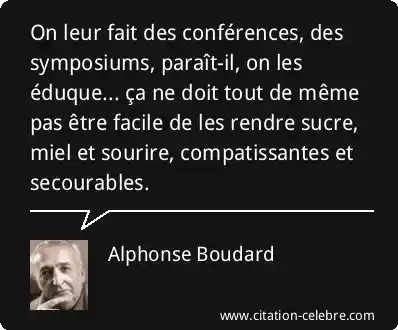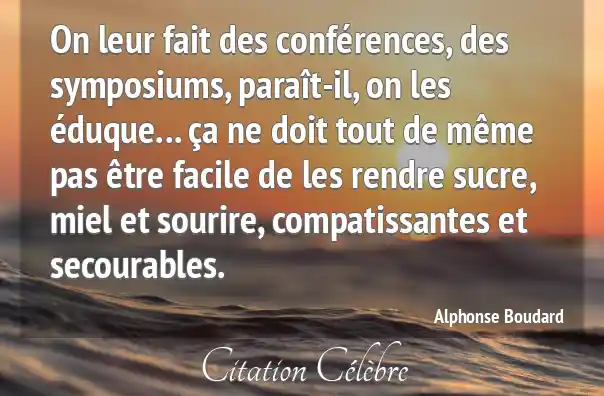On leur fait des conférences, des symposiums, paraît-il, on les éduque... ça ne doit tout de même pas être facile de les rendre sucre, miel et sourire, compatissantes et secourables.