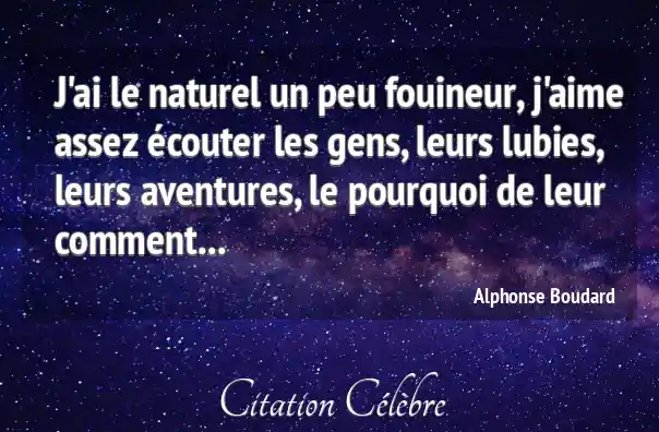 J'ai le naturel un peu fouineur, j'aime assez écouter les gens, leurs lubies, leurs aventures, le pourquoi de leur comment...