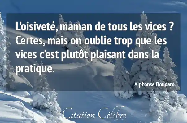 L'oisiveté, maman de tous les vices ? Certes, mais on oublie trop que les vices c'est plutôt plaisant dans la pratique.