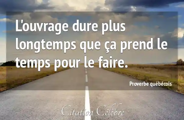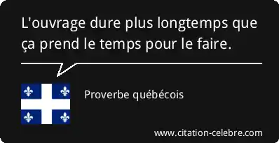 L'ouvrage dure plus longtemps que ça prend le temps pour le faire.