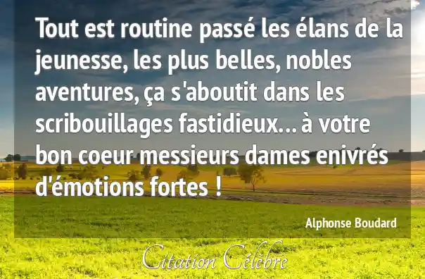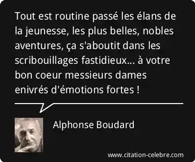 Tout est routine passé les élans de la jeunesse, les plus belles, nobles aventures, ça s'aboutit dans les scribouillages fastidieux... à votre bon coeur messieurs dames enivrés d'émotions fortes !