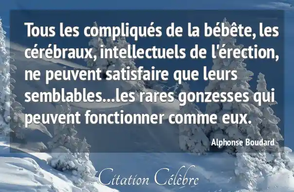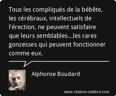 Tous les compliqués de la bébête, les cérébraux, intellectuels de l'érection, ne peuvent satisfaire que leurs semblables...les rares gonzesses qui peuvent fonctionner comme eux.