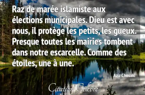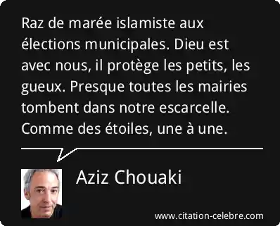 Raz de marée islamiste aux élections municipales. Dieu est avec nous, il protège les petits, les gueux. Presque toutes les mairies tombent dans notre escarcelle. Comme des étoiles, une à une.