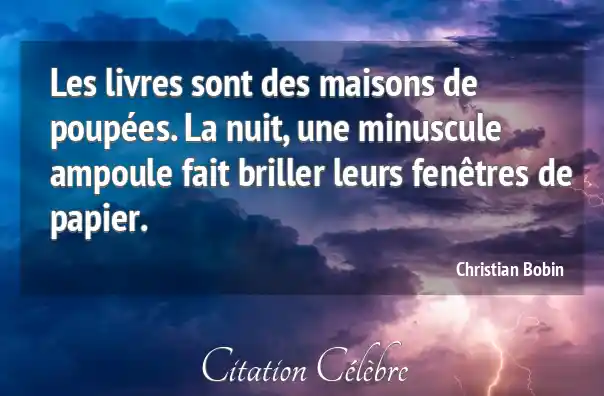 Les livres sont des maisons de poupées. La nuit, une minuscule ampoule fait briller leurs fenêtres de papier.