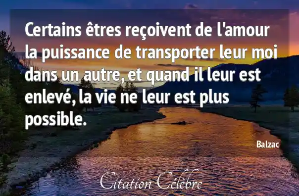 Certains êtres reçoivent de l'amour la puissance de transporter leur moi dans un autre, et quand il leur est enlevé, la vie ne leur est plus possible.