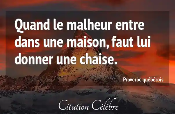 Quand le malheur entre dans une maison, faut lui donner une chaise.