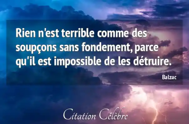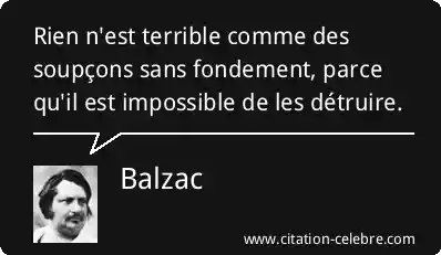 Rien n'est terrible comme des soupçons sans fondement, parce qu'il est impossible de les détruire.