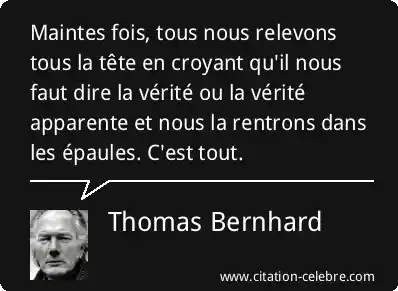 Maintes fois, tous nous relevons tous la tête en croyant qu'il nous faut dire la vérité ou la vérité apparente et nous la rentrons dans les épaules. C'est tout.