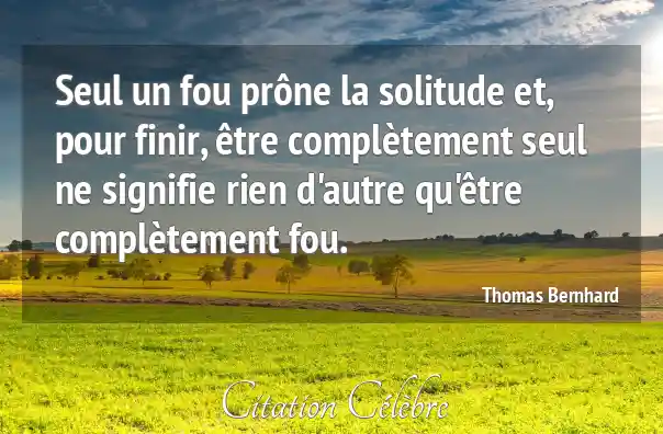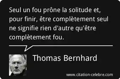 Seul un fou prône la solitude et, pour finir, être complètement seul ne signifie rien d'autre qu'être complètement fou.