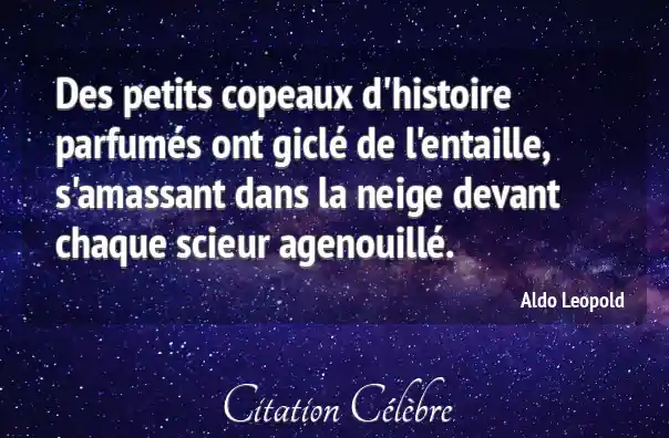 Des petits copeaux d'histoire parfumés ont giclé de l'entaille, s'amassant dans la neige devant chaque scieur agenouillé.