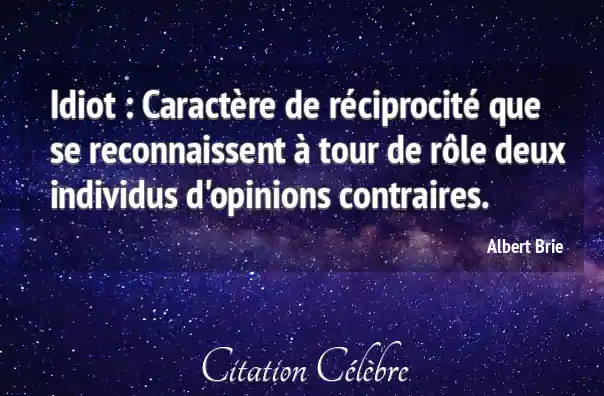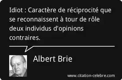 Idiot : Caractère de réciprocité que se reconnaissent à tour de rôle deux individus d'opinions contraires.