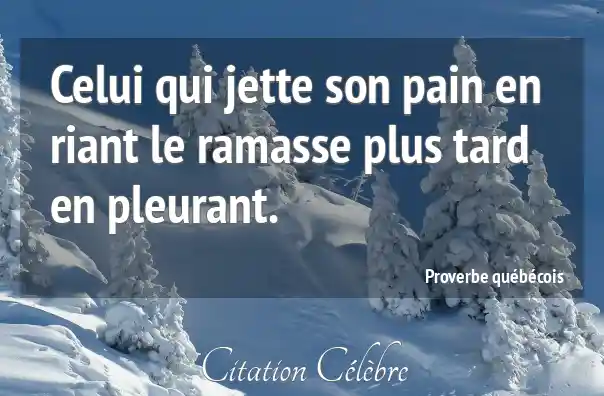 Celui qui jette son pain en riant le ramasse plus tard en pleurant.