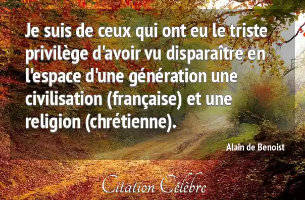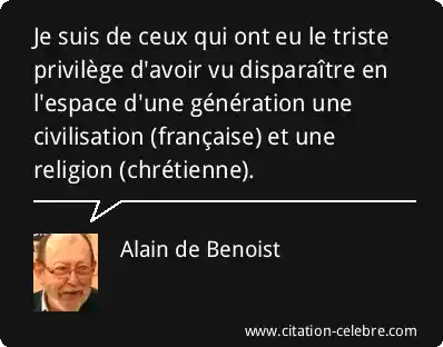 Je suis de ceux qui ont eu le triste privilège d'avoir vu disparaître en l'espace d'une génération une civilisation (française) et une religion (chrétienne).