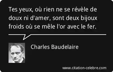 Tes yeux, où rien ne se révèle de doux ni d'amer, sont deux bijoux froids où se mêle l'or avec le fer.
