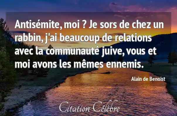 Antisémite, moi ? Je sors de chez un rabbin, j'ai beaucoup de relations avec la communauté juive, vous et moi avons les mêmes ennemis.