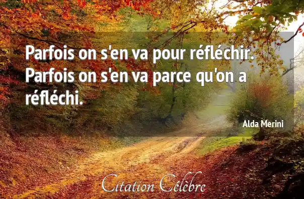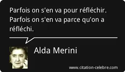 Citation Alda Merini parce : Parfois on s'en va pour réfléchir. Parfois on s'en va...