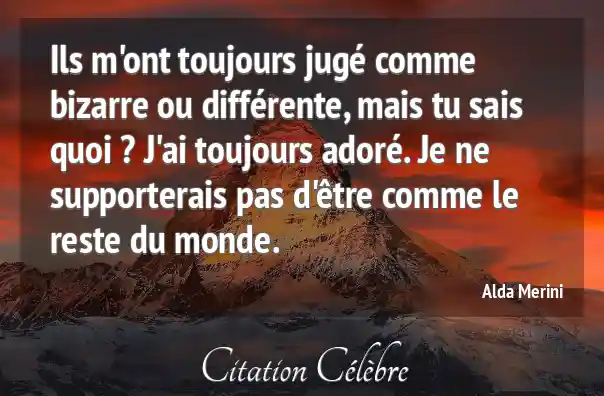 Ils m'ont toujours jugé comme bizarre ou différente, mais tu sais quoi ? J'ai toujours adoré. Je ne supporterais pas d'être comme le reste du monde.