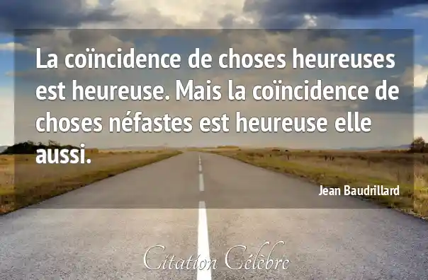 La coïncidence de choses heureuses est heureuse. Mais la coïncidence de choses néfastes est heureuse elle aussi.