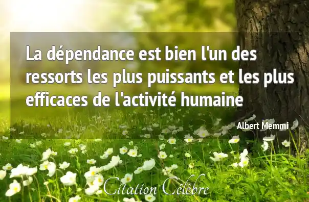 Votre étude sur la dépendance fait largement réfléchir. Comme toutes les choses très simples et qui, rappelées à l'esprit, soudain apparaissent évidente, on n'avait jamais pensé à y penser. Et voici que vous obligez à le faire et que s'ouvrent des horizons infinis. On se découvre soumis à un nombre de dépendances quasiment illimité.