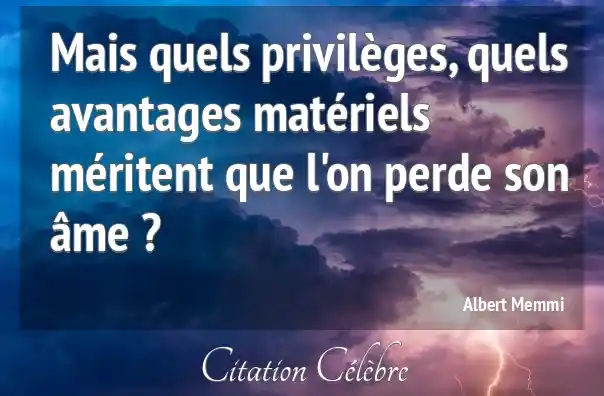 Mais quels privilèges, quels avantages matériels méritent que l'on perde son âme ?