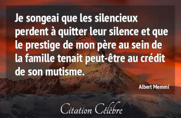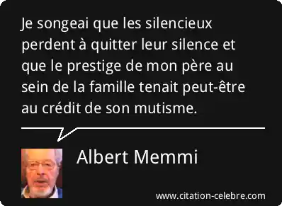Je songeai que les silencieux perdent à quitter leur silence et que le prestige de mon père au sein de la famille tenait peut-être au crédit de son mutisme.