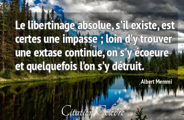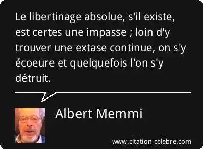 Le libertinage absolue, s'il existe, est certes une impasse ; loin d'y trouver une extase continue, on s'y écoeure et quelquefois l'on s'y détruit.