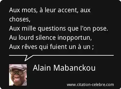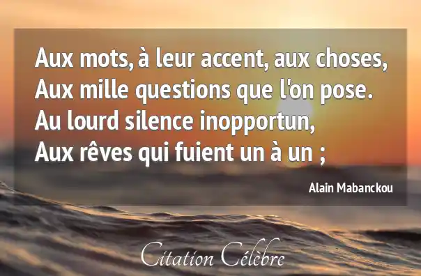 Aux mots, à leur accent, aux choses,Aux mille questions que l'on pose.Au lourd silence inopportun,Aux rêves qui fuient un à un ;