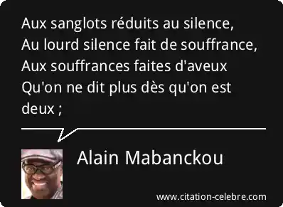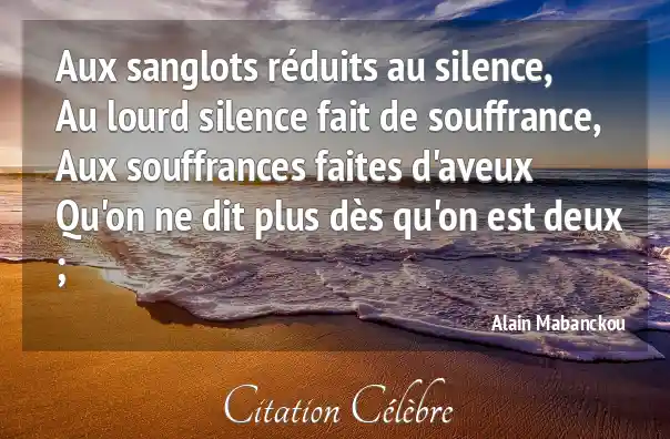 Aux sanglots réduits au silence,Au lourd silence fait de souffrance,Aux souffrances faites d'aveuxQu'on ne dit plus dès qu'on est deux ;
