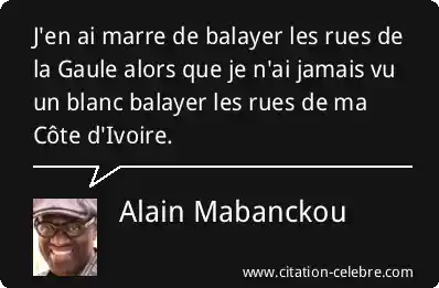 J'en ai marre de balayer les rues de la Gaule alors que je n'ai jamais vu un blanc balayer les rues de ma Côte d'Ivoire.