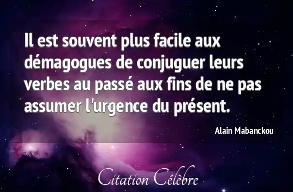 Il est souvent plus facile aux démagogues de conjuguer leurs verbes au passé aux fins de ne pas assumer l'urgence du présent.