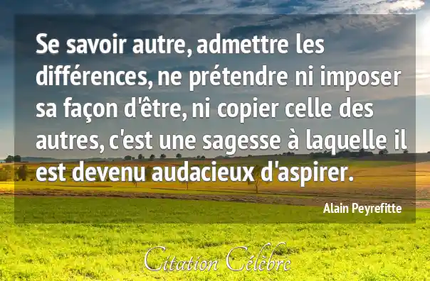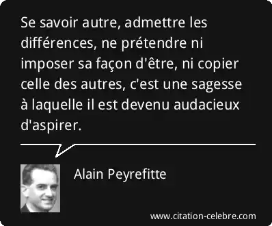 Se savoir autre, admettre les différences, ne prétendre ni imposer sa façon d'être, ni copier celle des autres, c'est une sagesse à laquelle il est devenu audacieux d'aspirer.