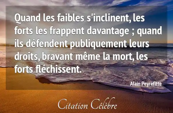Quand les faibles s'inclinent, les forts les frappent davantage ; quand ils défendent publiquement leurs droits, bravant même la mort, les forts fléchissent.