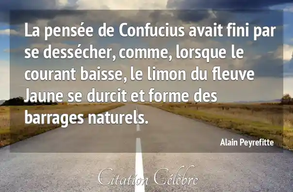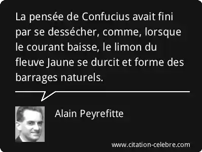 La pensée de Confucius avait fini par se dessécher, comme, lorsque le courant baisse, le limon du fleuve Jaune se durcit et forme des barrages naturels.