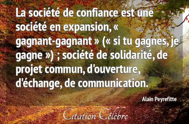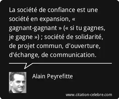 La société de confiance est une société en expansion, « gagnant-gagnant » (« si tu gagnes, je gagne ») ; société de solidarité, de projet commun, d'ouverture, d'échange, de communication.