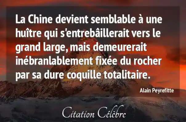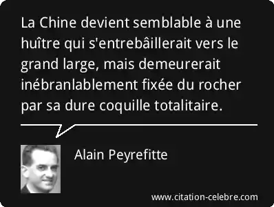 La Chine devient semblable à une huître qui s'entrebâillerait vers le grand large, mais demeurerait inébranlablement fixée du rocher par sa dure coquille totalitaire.