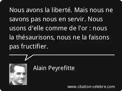 Nous avons la liberté. Mais nous ne savons pas nous en servir. Nous usons d'elle comme de l'or : nous la thésaurisons, nous ne la faisons pas fructifier.