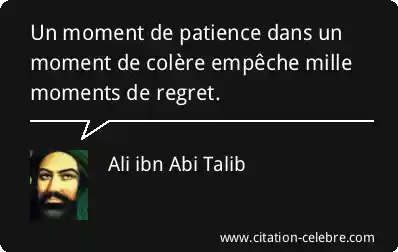 Un moment de patience dans un moment de colère empêche mille moments de regret.