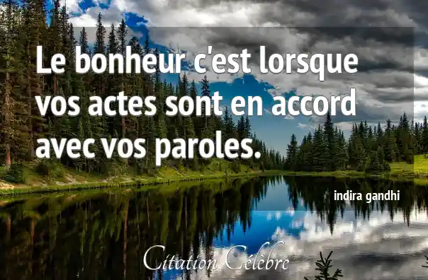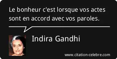Le bonheur c'est lorsque vos actes sont en accord avec vos paroles.