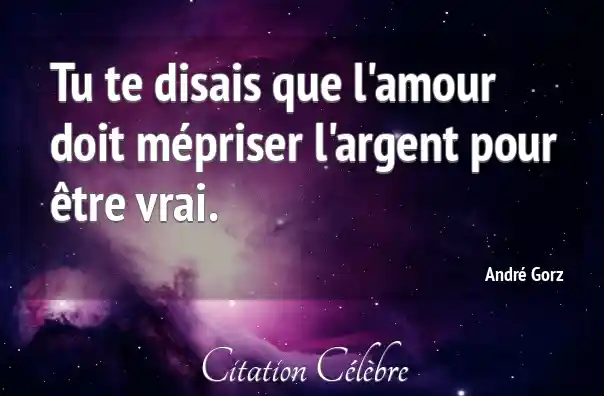 Tu te disais que l'amour doit mépriser l'argent pour être vrai.
