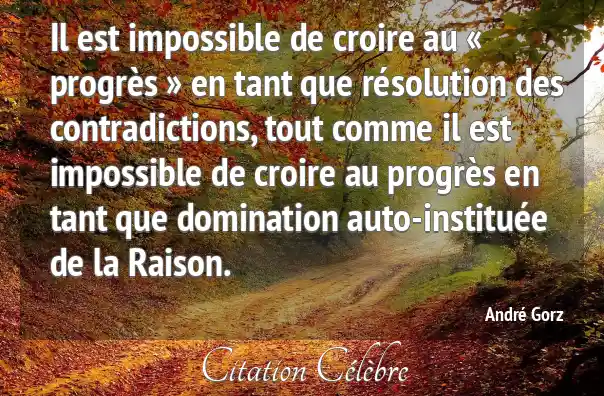 Il est impossible de croire au « progrès » en tant que résolution des contradictions, tout comme il est impossible de croire au progrès en tant que domination auto-instituée de la Raison.