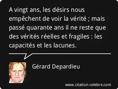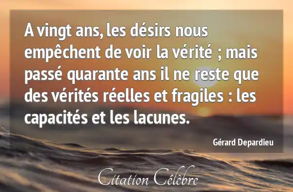 A vingt ans, les désirs nous empêchent de voir la vérité ; mais passé quarante ans il ne reste que des vérités réelles et fragiles : les capacités et les lacunes.
