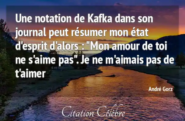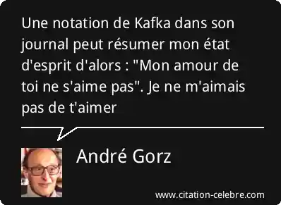 Une notation de Kafka dans son journal peut résumer mon état d'esprit d'alors : "Mon amour de toi ne s'aime pas". Je ne m'aimais pas de t'aimer