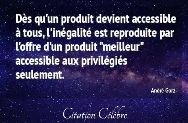 Dès qu'un produit devient accessible à tous, l'inégalité est reproduite par l'offre d'un produit "meilleur" accessible aux privilégiés seulement.