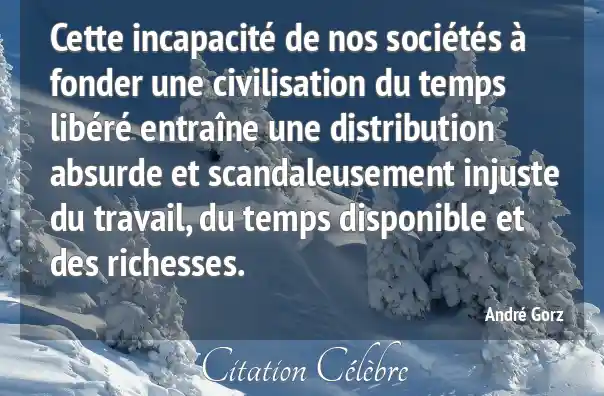 Cette incapacité de nos sociétés à fonder une civilisation du temps libéré entraîne une distribution absurde et scandaleusement injuste du travail, du temps disponible et des richesses.