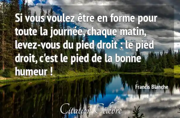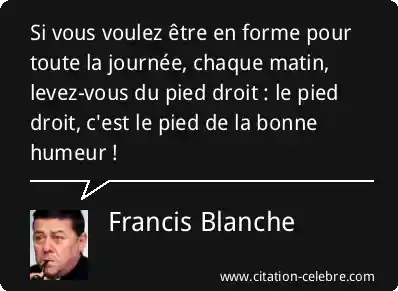 Si vous voulez être en forme pour toute la journée, chaque matin, levez-vous du pied droit : le pied droit, c'est le pied de la bonne humeur !
