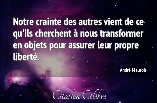 Notre crainte des autres vient de ce qu'ils cherchent à nous transformer en objets pour assurer leur propre liberté.