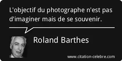 Citation Roland Barthes souvenir : L'objectif du photographe n'est pas d'imaginer mais de se souvenir....